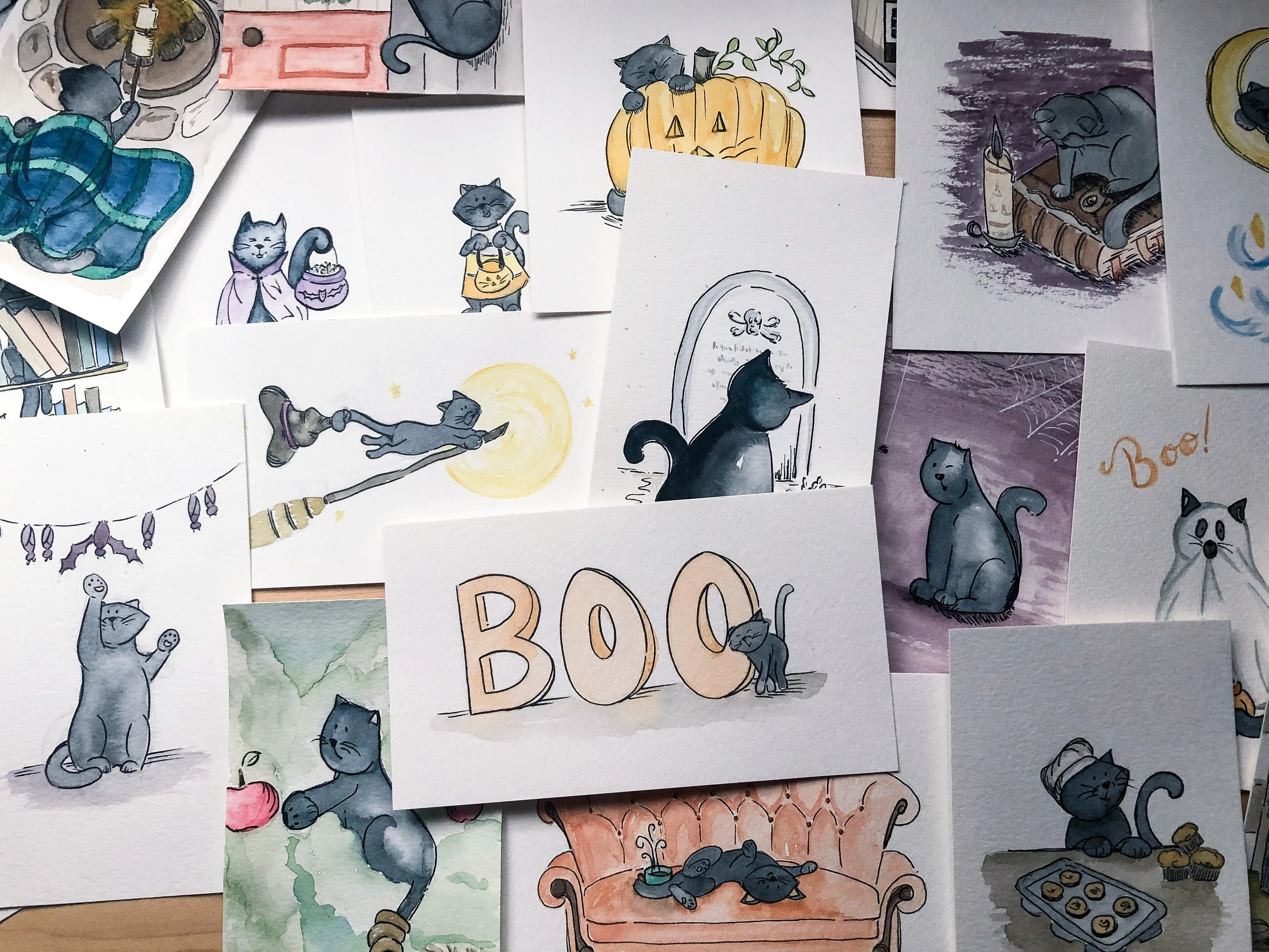 To celebrate finishing the 31 paintings I set out to create in October, I have created a special Binx sticker sheet with 4 of my favorite autumn scenes. You can get yours right from my Etsy shop.