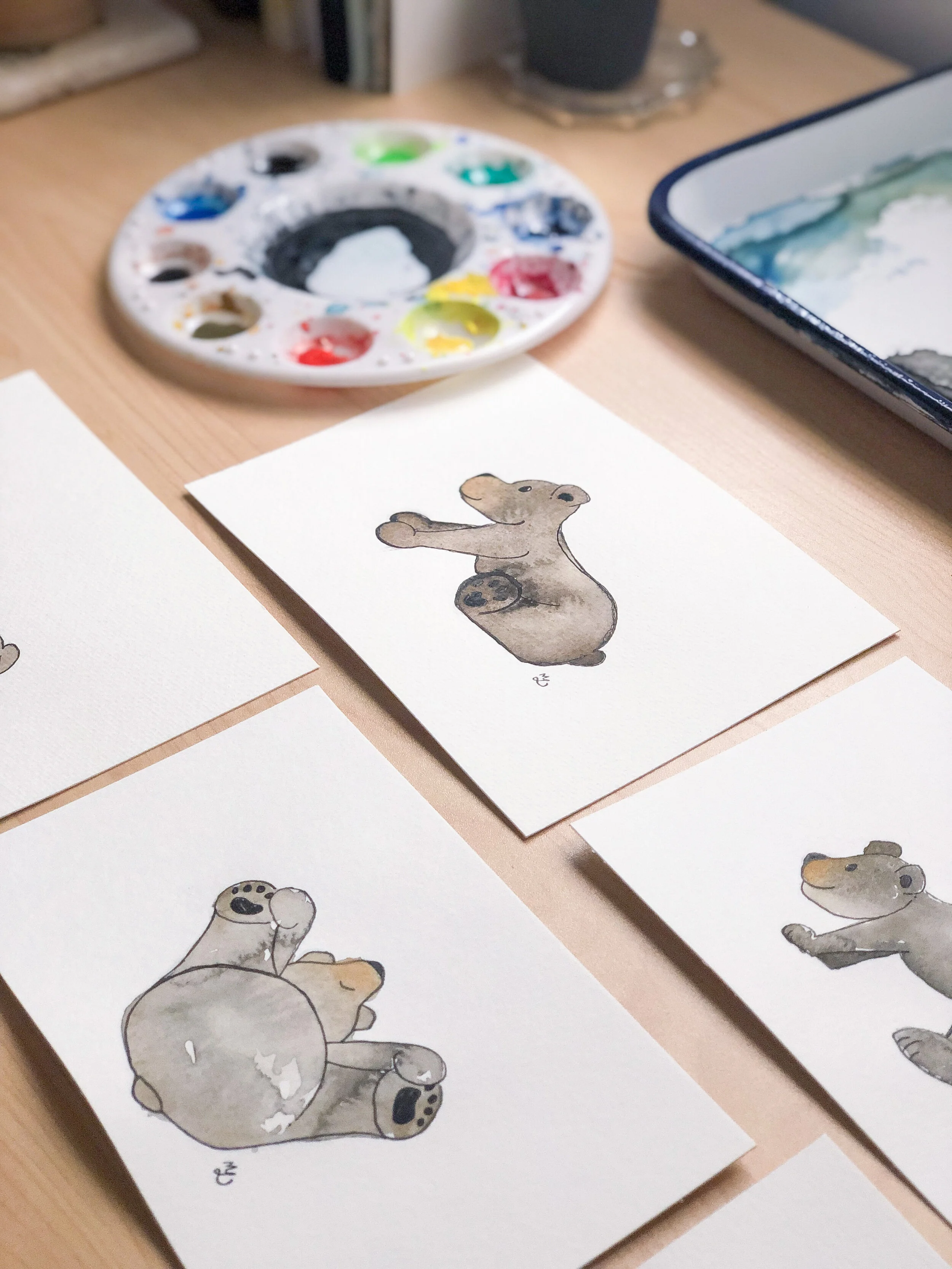 I participated in a 5 day challenge. My theme : watercolor bear cubs trying yoga poses.